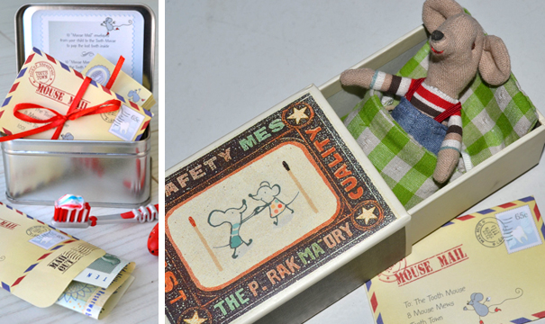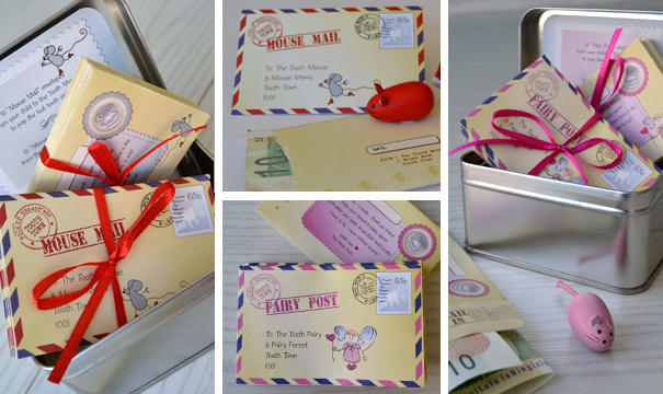 Each kit contains 10 sets of teeny credit-card sized envelopes: just the right size for a tooth or some money from the Tooth Mouse or Tooth Fairy! In each Tooth Mouse set you get 10 Mouse Mail envelopes to pop the lost tooth inside and leave out for the Tooth Mouse to collect - a tiny letter to the Tooth Mouse from your child - named & dated from your child on the back so that you can remember which tooth was lost when.