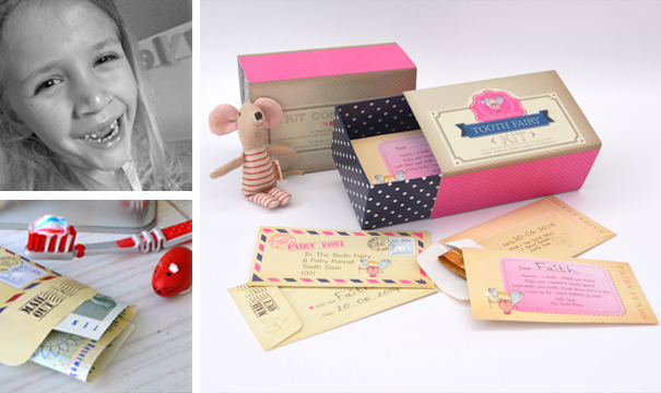 We have recently re-launched these popular little kits and they now come boxed in beautiful little sliding match-boxes, with slightly larger-than-before envelopes. Each kit contains 10 sets of teeny credit-card sized envelopes: just the right size for a tooth or some money from the Tooth Mouse or Tooth Fairy! In each Tooth Mouse set you get 10 Mouse Mail envelopes to pop the lost tooth inside and leave out for the Tooth Mouse to collect - a tiny letter to the Tooth Mouse from your child - named & dated from your child on the back so that you can remember which tooth was lost when.
