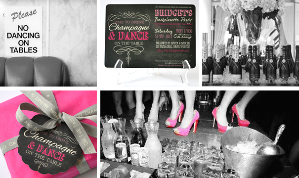 Time sure flies when you are having fun... one minute we were all celebrating our 21sts, then came the season of bachelorette parties, and suddenly the spate of fun and fabulous 40th birthday celebrations are upon us. I am loving it! Any excuse for a get together with my girlfriends - that involves high heels, dancing and bubbly - is a good one. And what better theme for any girlie celebration than our new "Time to drink champagne and dance on the table" range! Set the scene for your party with our chalkboard-designed personalised invitations and carry it throughout your function with our coordinating scallopped gift tags - fabulous when tied to a bottle of bubbly, a place setting or on a gorgeous gift.