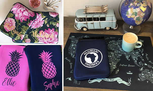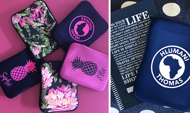 The gorgeous iPad & tablet cases, and laptop bags are stylish and practical. Designed by Macaroon and manufactured for and by Macaroon, locally in South Africa, each bag is personalised in top quality flex vinyl and finished with a chunky zip. The range will soon be extended to include utility, cosmetic and tote bags.
