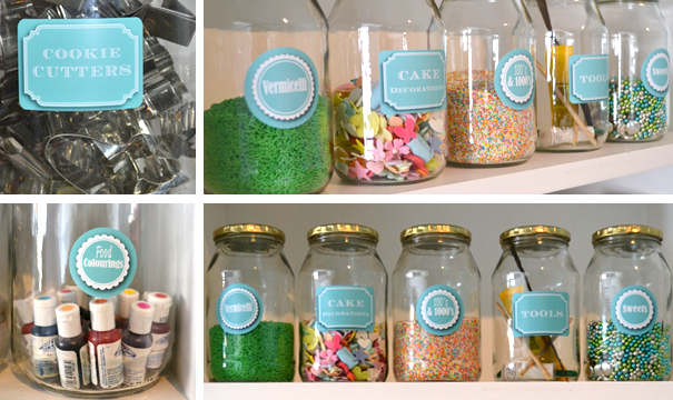 In my case, I love having my baking essentials and icing tools labelled - so I used some of my extras for unusual icing and baking labels. Having an organised pantry and baking cupboard makes baking that much more fun.