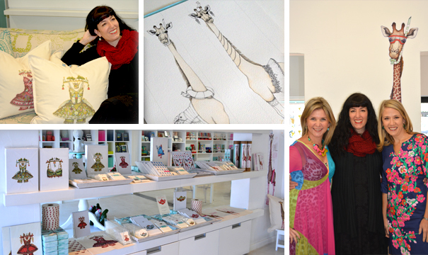 Before telling you more about our exciting new collaboration, let me tell you more about Tracy Paul - best known for her enchanting and whimsical sketches of African animals such as giraffe and zebra, wearing tutus and teapots, as well as her intricate bustier bras and eccentric dresses. You will instantly recognise her beautiful drawings from the range of popular greeting cards in Exclusive Books; so when Tracy placed a personal order through Macaroon and then approached us about doing a collaborative range, we were leaping with excitement and enthusiasm.
