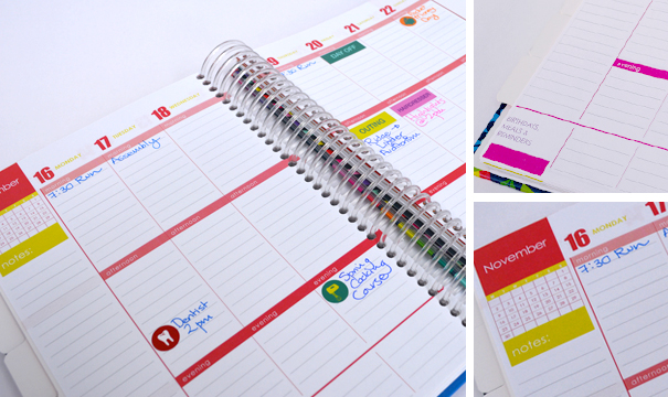 At Macaroon, our clients are always our best market research. We love and value your feedback as you are the ones using and experiencing our site and our products. Our 2014 and 2015 personalised diaries were such a hit - you all seemed to use them as your life planners, filling them in with coloured pens and stickers, stuffing the storage folders with slips, vouchers and photos, and enjoying all the tabs and features. I personally got so excited every time I saw someone carrying a bright Macaroon diary around with them! We have had so much constructive feedback over the past year on what you loved and what you wanted more of: you needed more storage space and more space to doodle, list and write; you loved the colour and how the diaries indulged your childhood stationery obession; many of you begged for a page a day layout instead of the week of a glance that we offered last year; and so many of you mentioned colour and design.