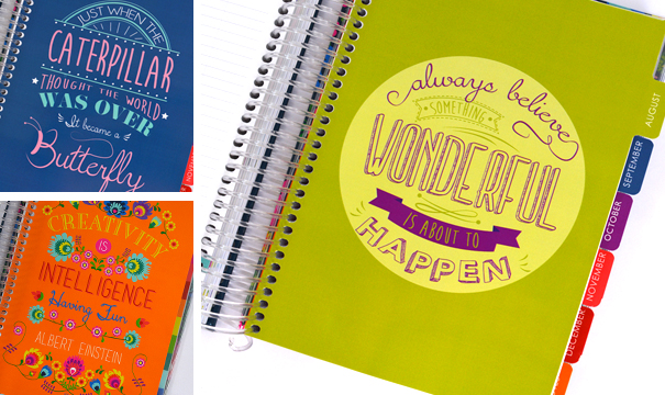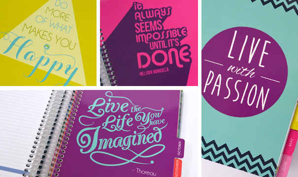For every month, we have picked a fun, uplifting, quirky quotation and our talented team of designers have transformed it in to a typographic divider - meaning that you start each month with a touch of inspiration. In January you feel the start of somethign new; February reminds you to live with passion; August tells you to always believe that something wonderful is about to happen; and our notes and doodles section points out that creativity is intelligence having fun!