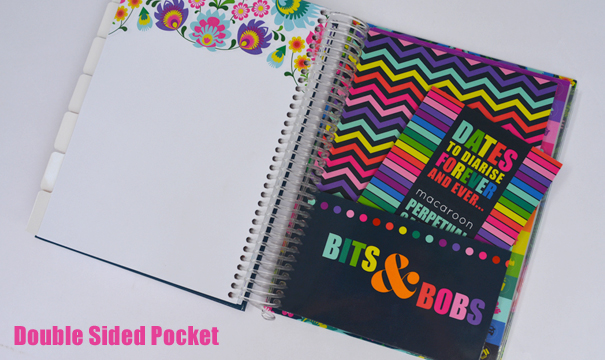 New at the back of the diary is a double-sided pocket folder, ver handy for storing slips, vouchers and other bits and bobs. Behind this pocket there are still two clear storage sleeves - the ones that you have always loved - for storing your stickers or other diary accessories. The three combined mean that you have ample storage space in your new diaries. Unfortunately, despite regular requests, we are not able to add additional clear sleeves to the back of your diaries as the diary gets too thick for the ring binder - so we have maxed out at our new storage pocket and two sleeves and are sure that you will love the combo.