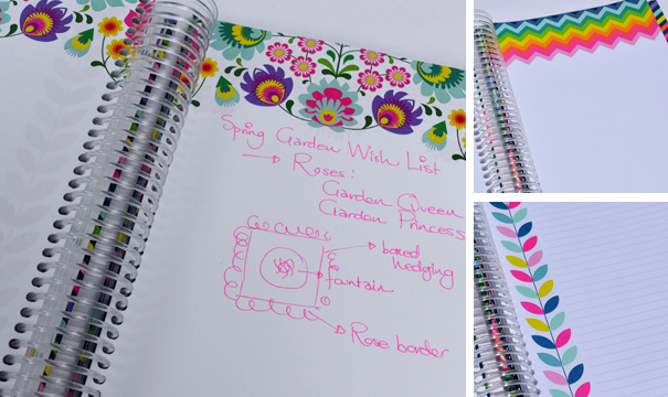 My other personal favourite feature of the new full colour prints is the notes section. Given the thickness of the page a day diary, it has fewer notes and doodle pages (around 22), whereas the week at a glance has over 60 pages allocated to this section, giving you additional space for lists and planning. But in both diaries, the notes and doodles section is made up of lined and blank pages, all featuring our beautiful bright fabulous Fiesta designs along the top of each page or up the sides. They are so pretty, I hardly want to write on mine! These pages will make sure that you live a colourful life!