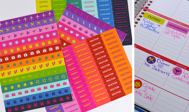 With the 2015 limited edition diaries, you will also receive four A5 sized FREE sheets of useful and bright vinyl icon and alert stickers. I simply love these little guys! They are perfect to pop on your months at a glance and such fun to use when brightening up your diary. If you use them all up, we sell top up packs online and in-store.